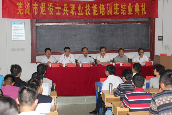 5月26日上午,我院隆重举行了芜湖市2013年退役士兵职业技能培训班结业典礼,学院副院长高武、市民政局安置办主任李潜、芜湖诺康生物科技有限公司董事长许震和镜湖区、无为县、鸠江区、弋江区、三山区、经济技术开发区民政局领导出席了本次典礼,典礼由继续教育学院负责人荣世雄主持。