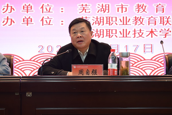 为深入学习贯彻党的二十大精神,坚持社会主义办学方向,落实立德树人根本任务,2023年11月17日上午,由芜湖市教育局主办,芜湖职业教育联盟、芜湖职业技术学院承办的2023年市属民办学校党员教育培训班在芜湖职业技术学院图书馆报告厅顺利举行。芜湖市教育局党委委员、副局长、民办学校党委书记周自强、芜湖职业技术学院党委委员、副院长朱志国、芜湖职业技术学院继续教育学院党总支书记赵敬德、芜湖市教育局职业教育与成人教育科科长戚梅、芜湖职业技术学院继续教育学院党总支副书记李玉胜、芜湖市教育局职业教育与成人教育科副科长陈丽出席了开班仪式,仪式由戚梅主持。