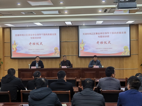 11月29日,由芜湖市鸠江区人力资源和社会保障局主办,芜湖职业技术学院承办的鸠江区事业单位领导干部高质量发展专题培训班圆满结业。本次培训班自11月25日开班至29日结束,共历时5天。来自鸠江区各事业单位的负责人,共27人参加培训。