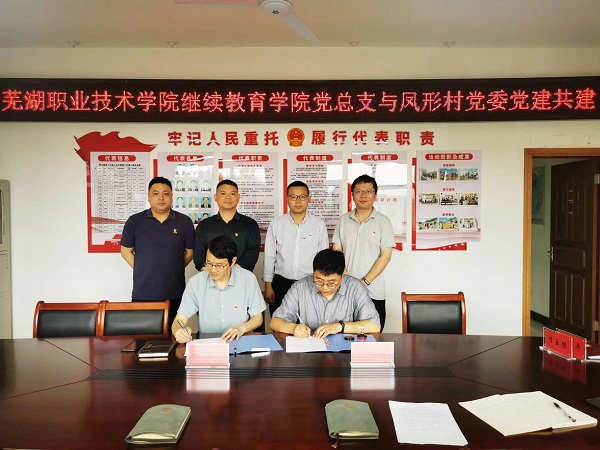 5月31日上午,芜湖职业技术学院继续教育学院党总支与繁昌区峨山镇凤形村党委举行了党建结对共建协议签约仪式。继续教育学院党总支书记赵敬德、继续教育学院副院长李玉胜、继续教育学院综合办公室主任吴定丙、峨山镇党委副书记、凤形村第一书记潘兵,峨山镇党委委员、组织委员房熔参加会议。