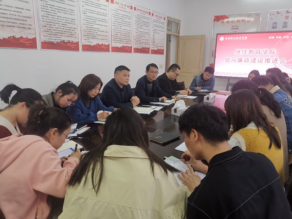 4月10日下午,继续教育学院在镜湖校区会议室召开党风廉政建设推进会。会议由继续教育学院党总支书记赵敬德主持,全体教职工参会。